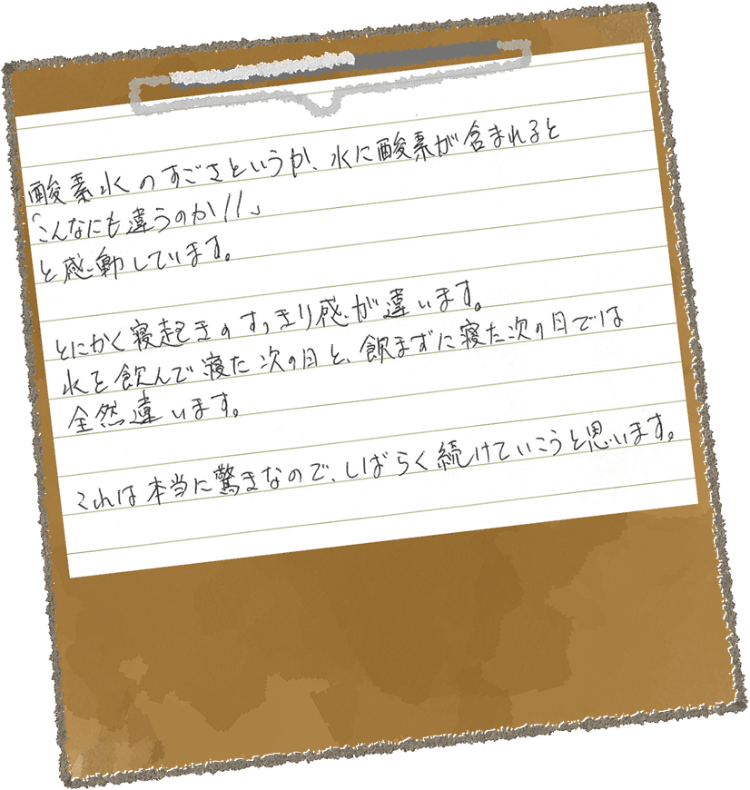ナノマジック気液混合方式でつくられた高濃度酸素水